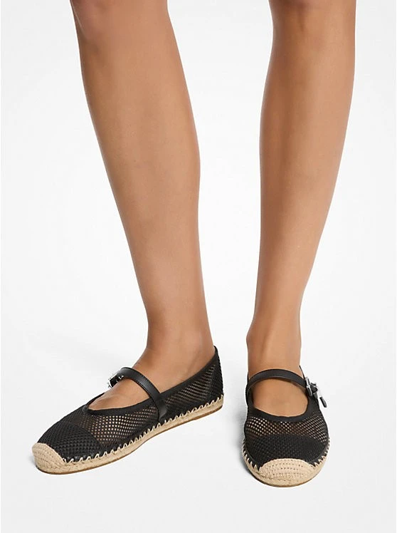 fabriqué en maille et a une forme moderne inspirée des ballerines, ainsi qu’une bride à boucle et une semelle en jute tissé. Avec une robe fleurie et un sac tissé, vous pouvez créer un look de vacances chic.