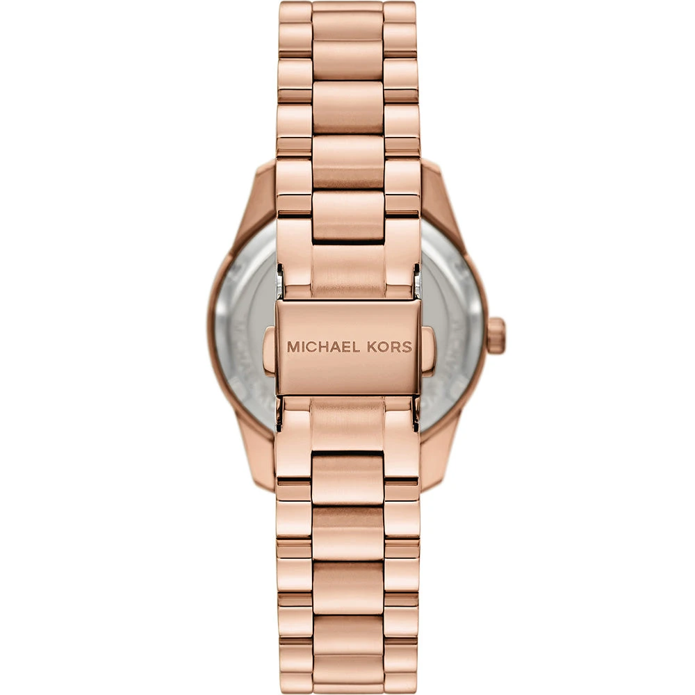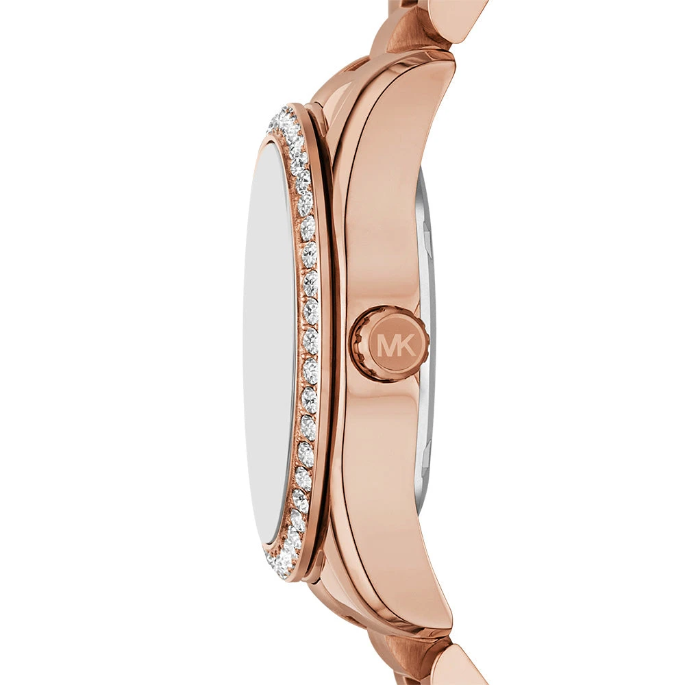 The Michael Kors Lexington MK4926 is a striking fusion of luxury and sophistication. It features a warm rose gold-tone stainless steel case and bracelet, paired with a sparkling crystal-set bezel that adds a touch of glamour. The deep blue dial creates a bold contrast, enhanced by functional sub-dials for everyday versatility.