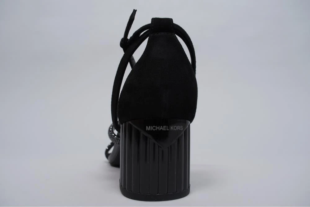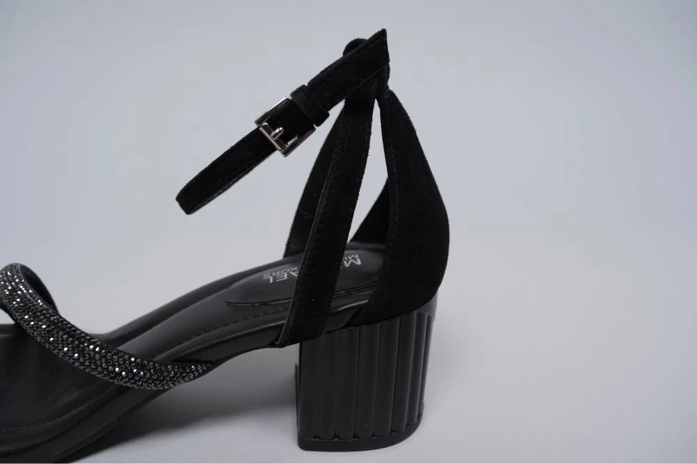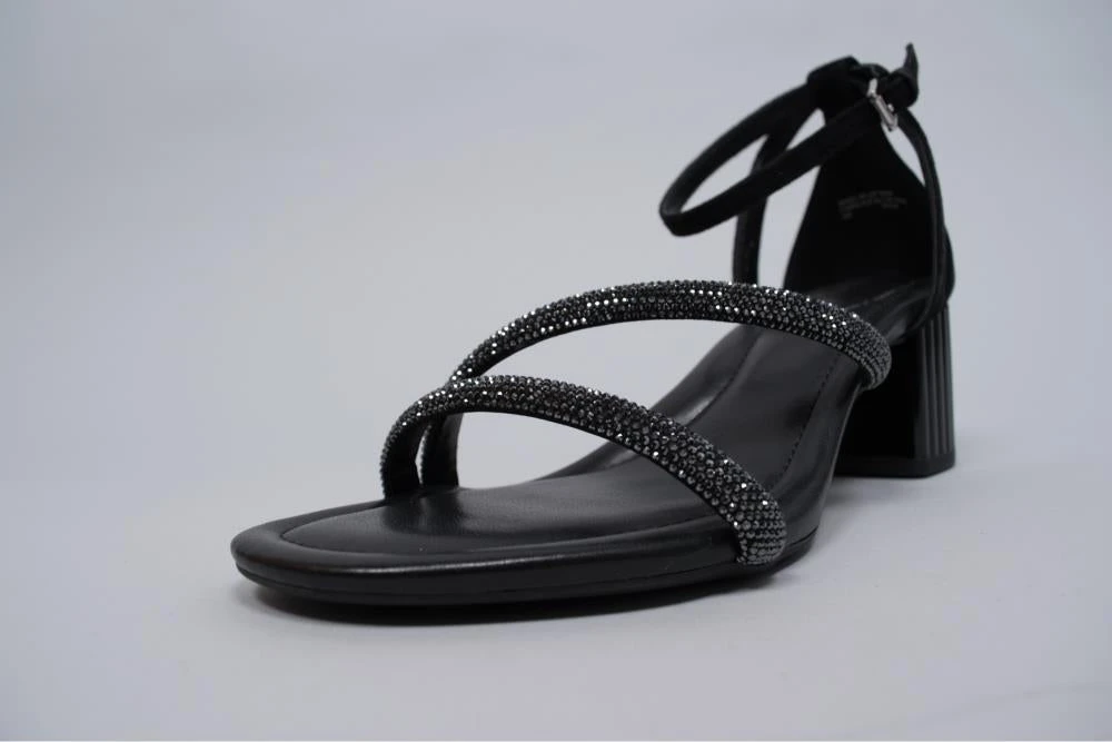 SANDALE À TALON NOIR AVEC BRILLANT NOIR ET SUÈDE NOIR